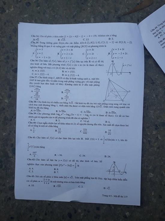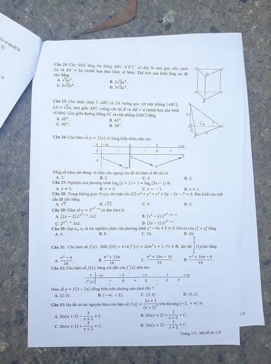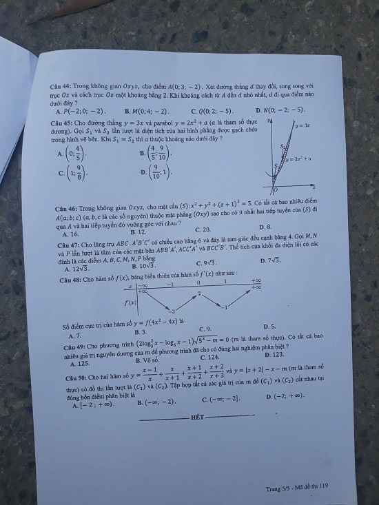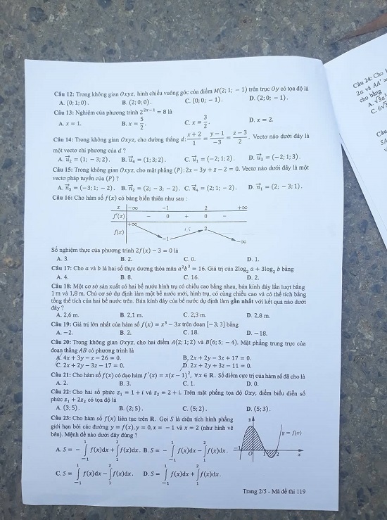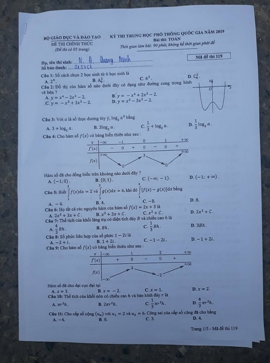 (Ấn F5 để cập nhật Đáp án, đề thi môn Toán mã đề 119 THPT quốc gia 2019 nhanh nhất, chuẩn nhất)