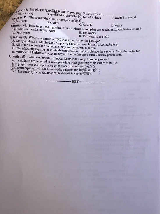 Đáp án trong đề do thí sinh khoanh, không phải đáp án chính thức. (Đề thi cập nhật lúc 3h40) |