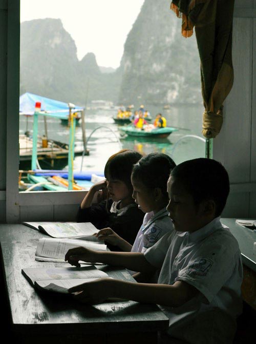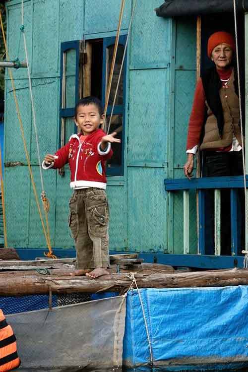 | Trong những gia đình ngư dân trên vịnh Hạ Long, tất cả mọi thành viên đều ra khơi. Trẻ nhỏ mắc mồi thả câu, lớn hơn một chút chèo mui, kéo lưới. Trưởng thành, lấy vợ lấy chồng thì sẽ vừa chèo vừa giăng lưới, thả câu vừa dạy bảo con em đánh bắt tôm cá… |