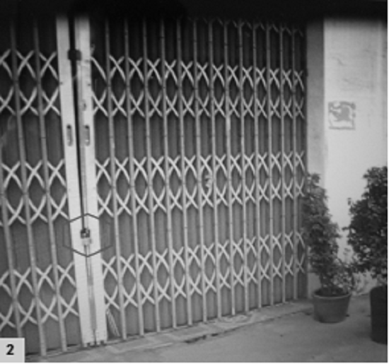 Cửa ki ốt quán cắt tóc nhạy cảm được đóng lại, móc hờ ổ khóa khi khách đã vào trong “thư giãn” |
