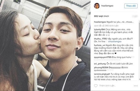 Mới đây, ca sĩ Hoài Lâm bất ngờ đăng tải lên trang cá nhân khoảnh khắc được 1 cô gái lạ mặt hôn má đầy tình cảm. Chú thích cho bức ảnh này, con nuôi danh hài Hoài Linh hào hứng viết: "Người yêu tôi nè".