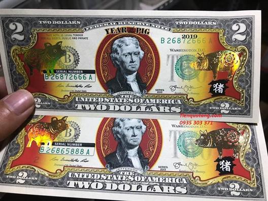 Theo người bán hàng, đồng 2 USD in hình con heo do bộ Tài chính Mỹ phát hành nhằm mang đến món quà ý nghĩa cho người dân châu Á trong dịp lễ Tết lớn của năm. Tờ tiền 2 USD in hình con heo là tiền thật được chế tác họa tiết hết sức đặc biệt với hình tượng chú lợn đầy màu sắc tươi mới, mang đến người nhận sự vui tươi trong ngày đầu năm.