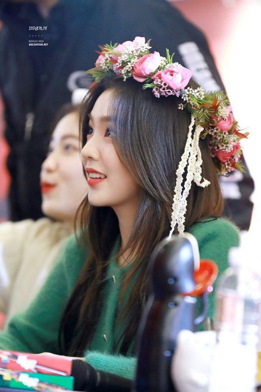 Không quá khi nói Irene (Red Velvet) sinh ra là để đội lên đầu những vòng hoa xinh đẹp, rực rỡ và thứ phụ kiện này cũng chỉ để bổ trợ cho nhan sắc vốn thuộc hàng nữ thần của cô nàng. |