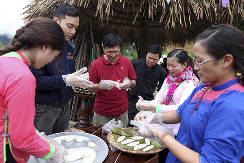 Đâu chỉ trải nghiệm quy trình ủ và nấu rượu, ở một góc khác của lễ hội du khách còn tiếp tục được trực tiếp tham gia cách nhào bột, nặn bánh dày, bánh dẻo của người Dao. Những say mê, vui tươi, hạnh phúc mãi lan tỏa trên từng khuôn mặt rạng ngời.