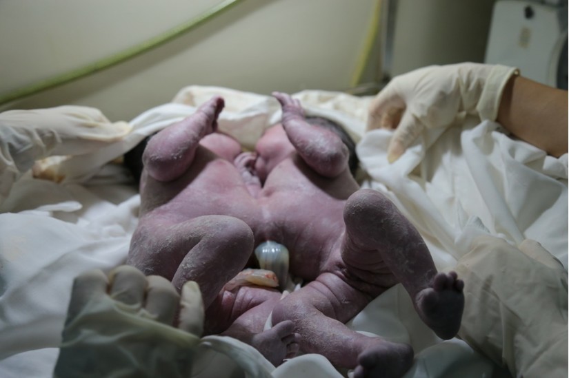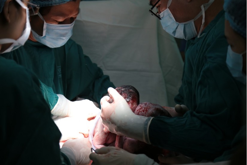 Khi thai được 36 tuần tuổi, sản phụ được nhập viện vào khoa Sản A để theo dõi và mổ lấy thai do song thai dính, không thể sinh ngả âm đạo.