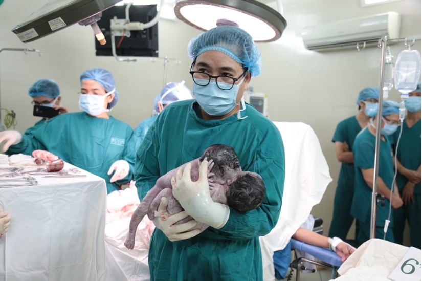"Đây là một ca mổ đặc biệt khó so với các ca phẫu thuật lấy thai mà bản thân đã từng thực hiện, vì khối thai song sinh một noãn (hợp tử), dính liền bụng và gan là trường hợp hiếm, chiếm khoảng 1% số song thai 1 hợp tử.