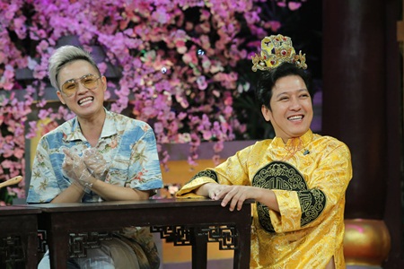 Với yêu cầu của Trường Giang, nam ca sĩ còn hài hước giả giọng hát của ca sĩ Lệ Quyên, Minh Tuyết khiến mọi người thích thú. Chưa dừng ở đó, Thanh Duy còn “lầy lội” ngân một câu Cải lương hơi dài với màn nhép miệng cực khớp của Trường Giang.