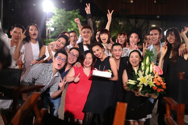 Thanh Hằng bất ngờ được ekip Vietnam's Next Top Model tổ chức sinh nhật sớm. |