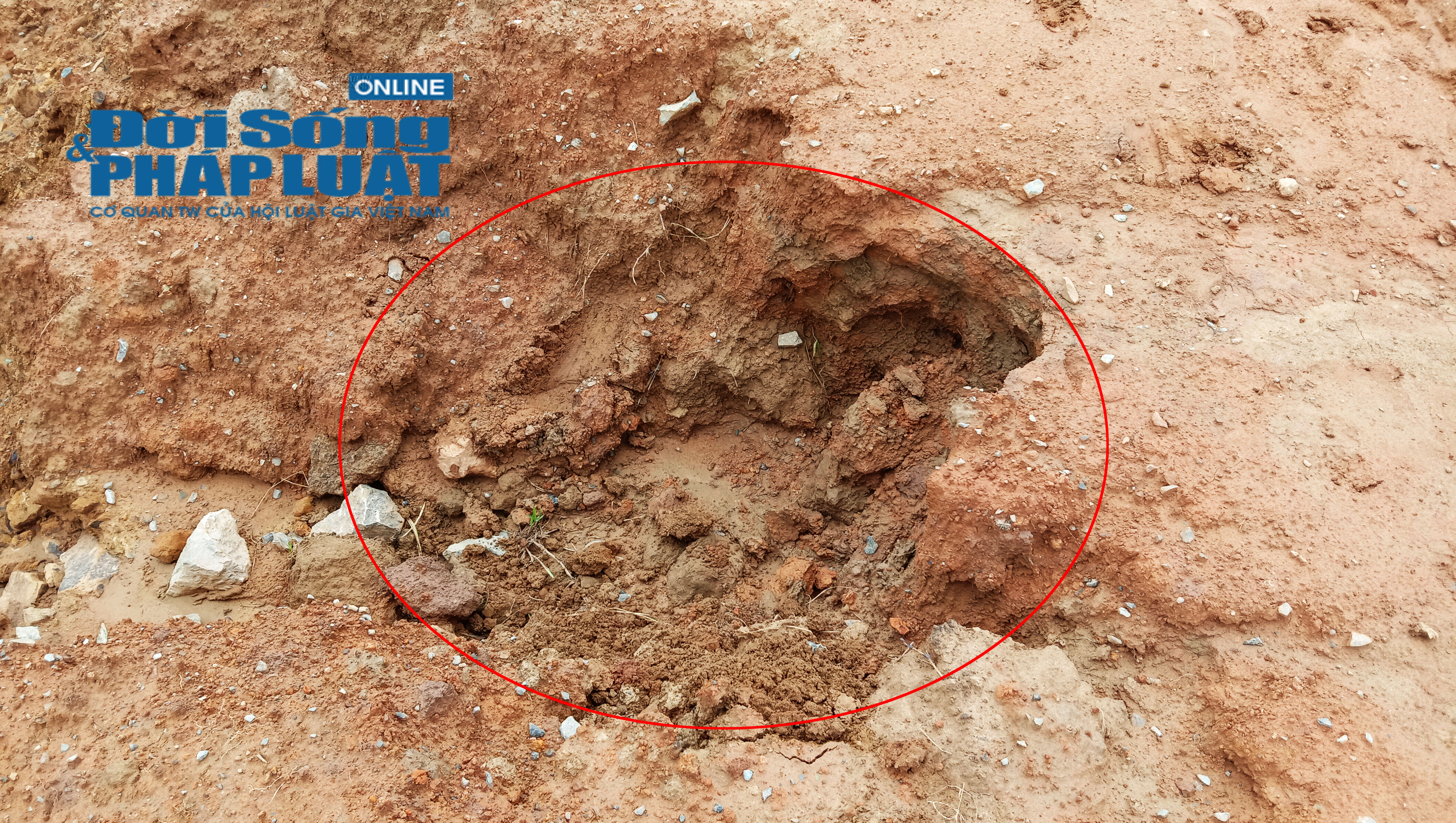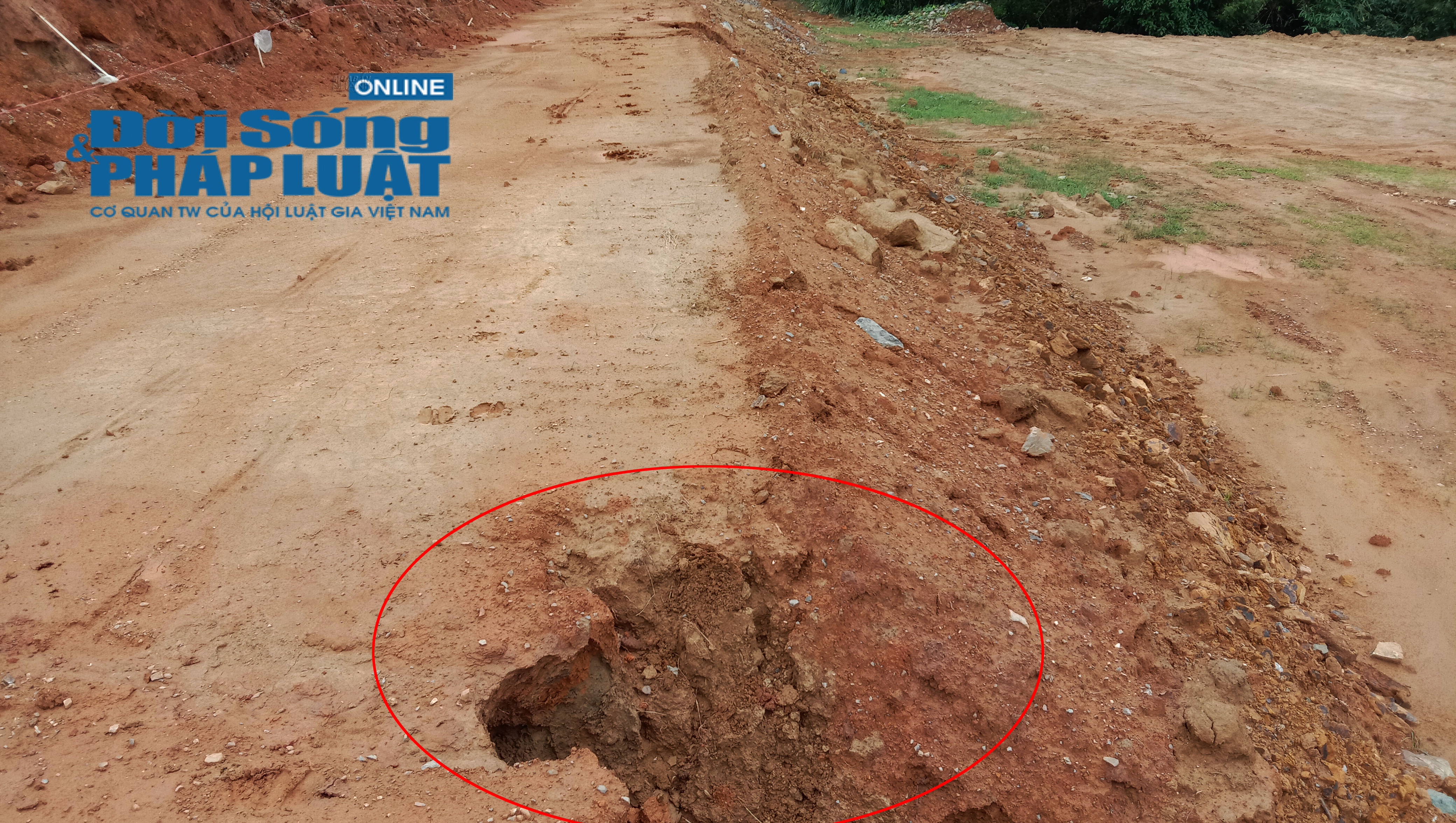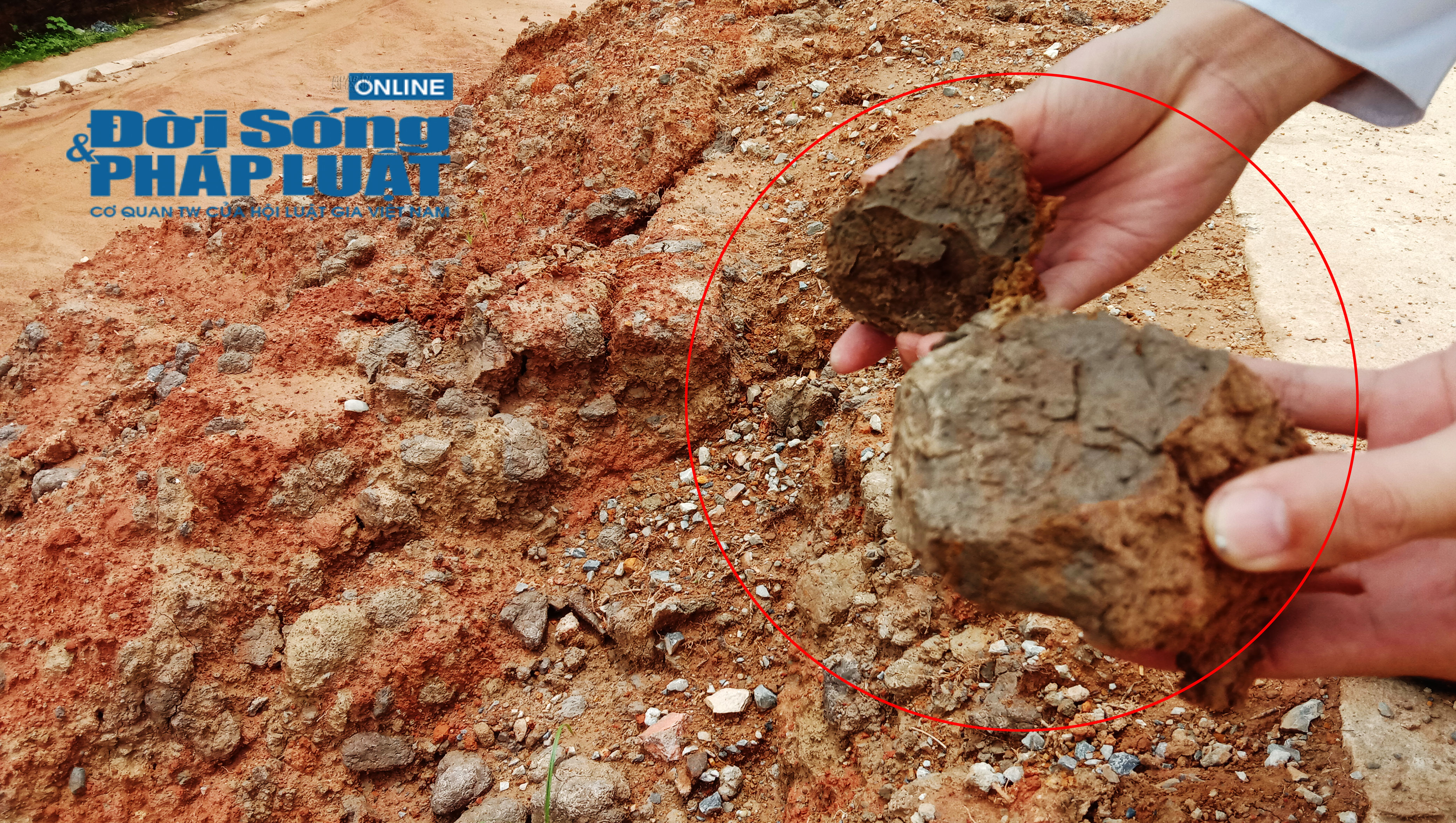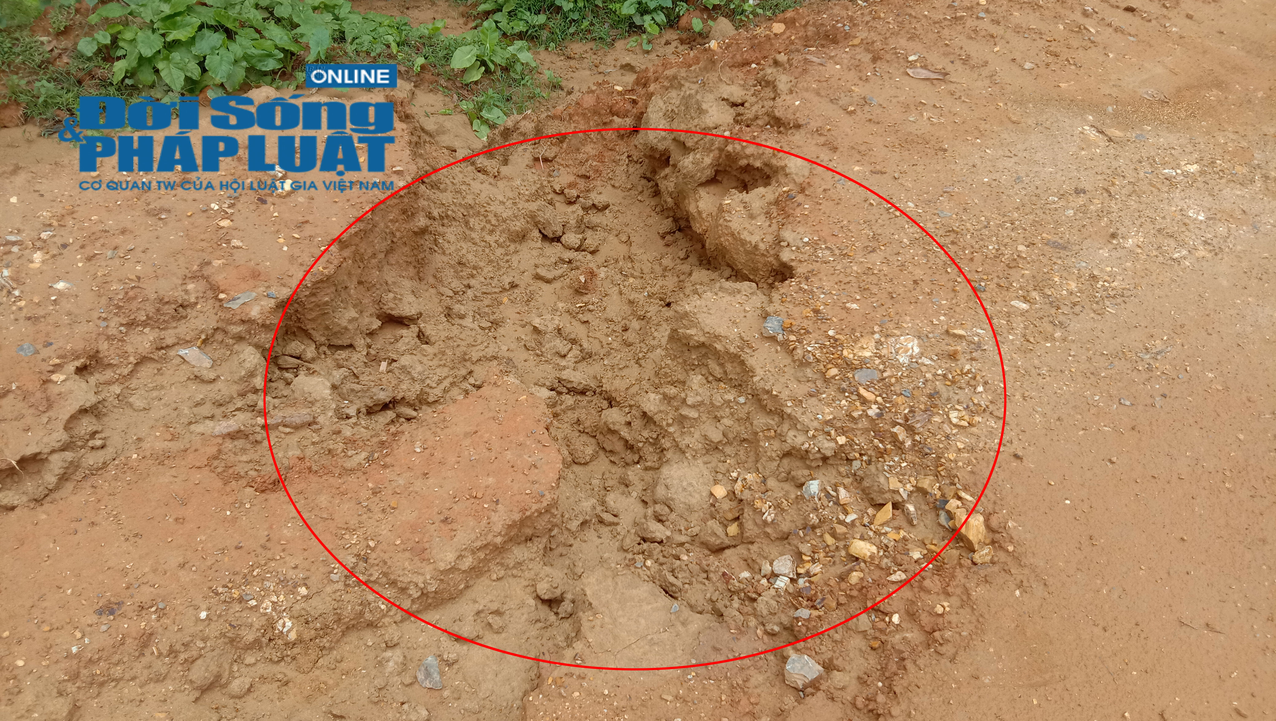 Mưa làm lộ nền đất - phần lớn là đất pha cát tạp.
