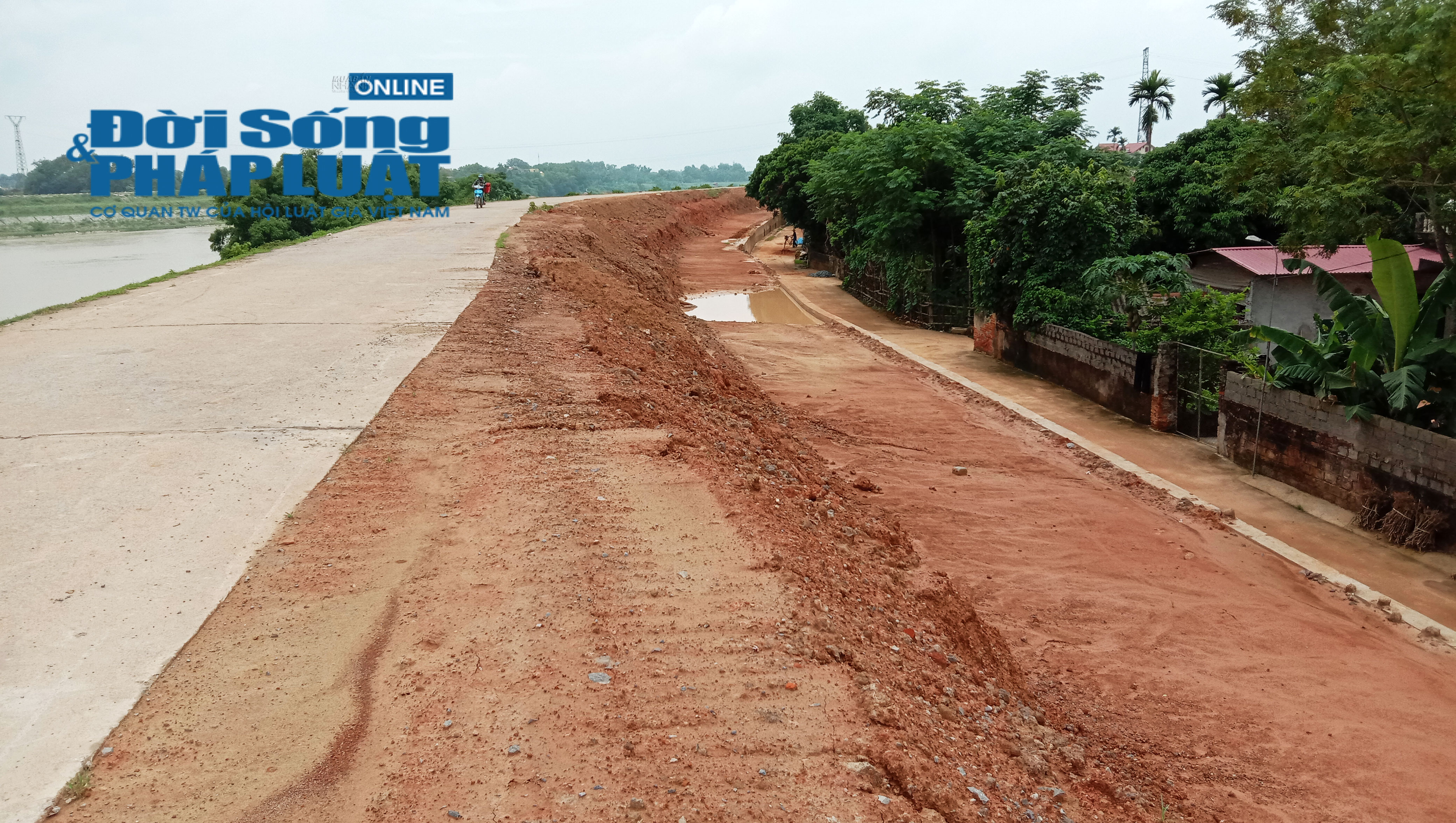 Tuy nhiên trong quá trình triển khai, người dân phát hiện đơn vị thi công đã dùng đất thải để làm nền và đắp đê.
