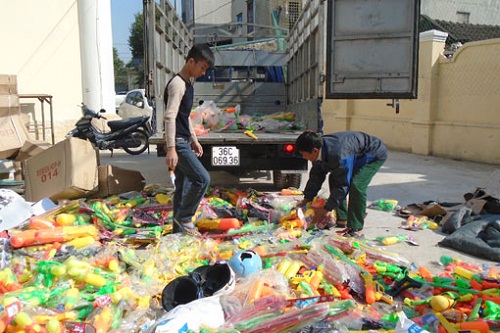 | Chi cục QLTT tiêu hủy số lượng lớn hàng vi phạm. Ảnh: T.H |