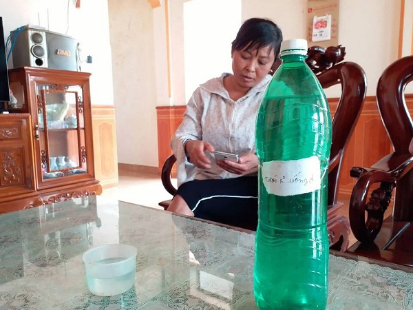 Nghi ngờ đã có người đổ thuốc diệt cỏ vào bể nước, chị Tâm đã gọi bà con hàng xóm, đồng thời báo cáo lên chính quyền địa phương.