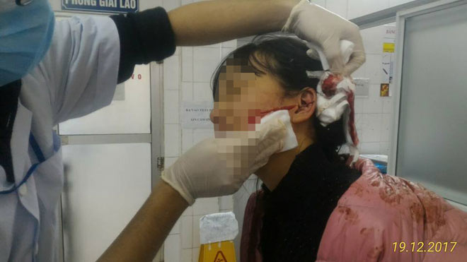 Mâu thuẫn tại chợ, nữ sinh bị đâm rách mặt. Ảnh: Dân Việt |