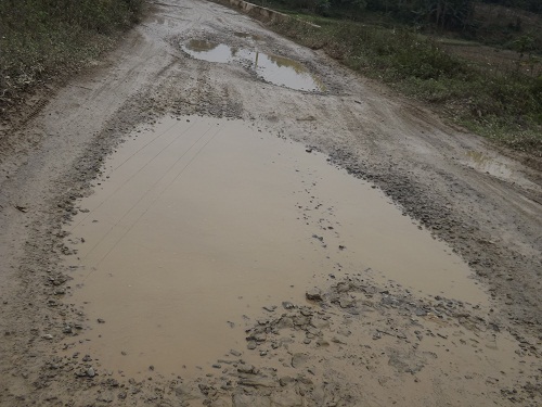 Tuyến đường dân sinh đang ngày đêm bị cày nát, nhiều hố sâu, ổ voi, ổ gà xuất hiện gây nguy hiểm cho người đi lại.