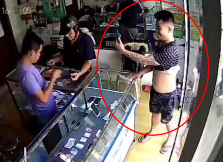 Hình ảnh ghi nhận từ camera cho thấy, nam thanh niên mặc áo đen, quần đùi vờ hỏi mua một chiếc điện thoại iPhone rồi cầm lên ngắm nghía. Đáng chú ý, nam thanh niên này còn cầm điện thoại “tự sướng” khiến chủ cửa hàng vô ý mất cảnh giác.