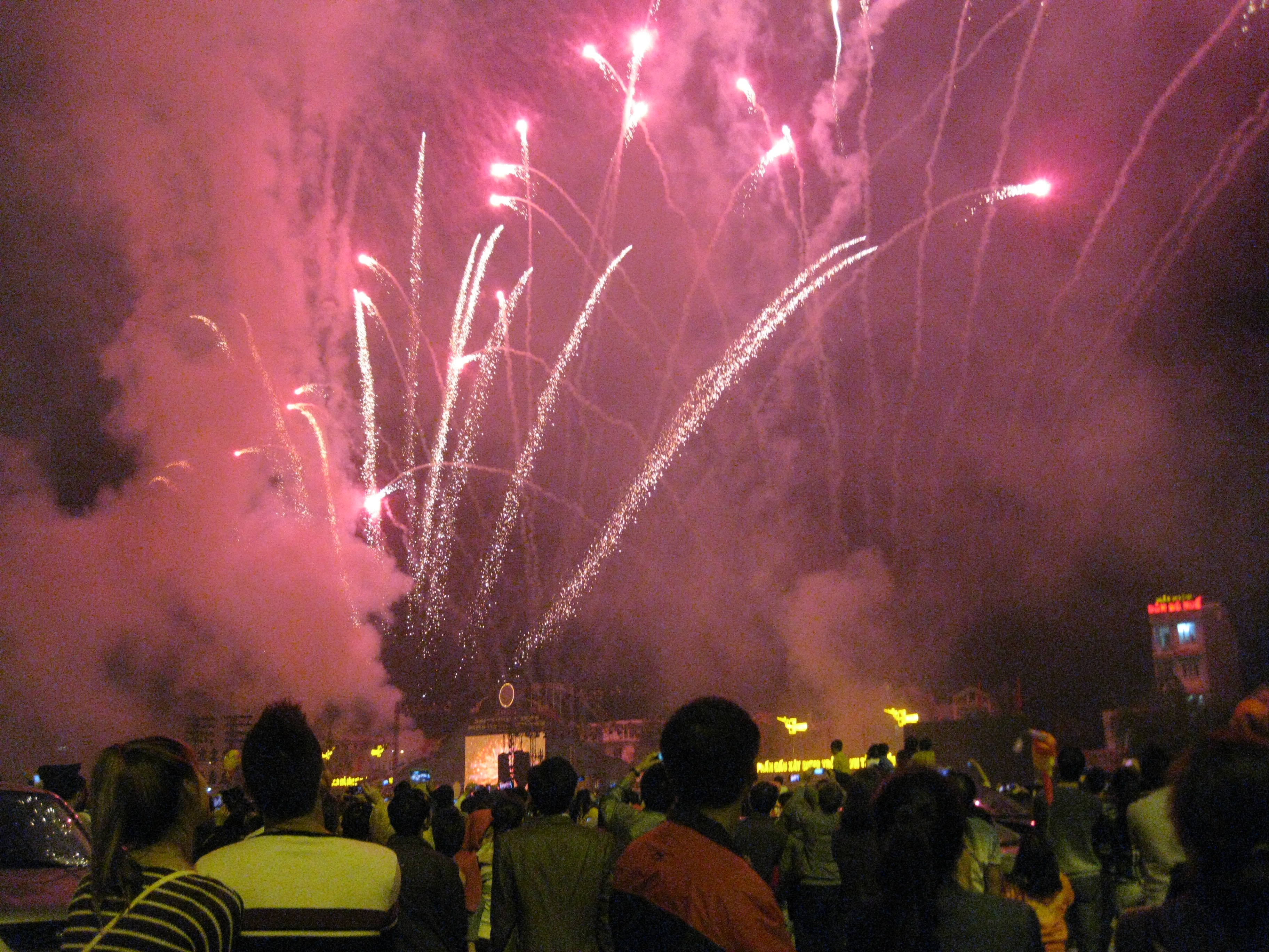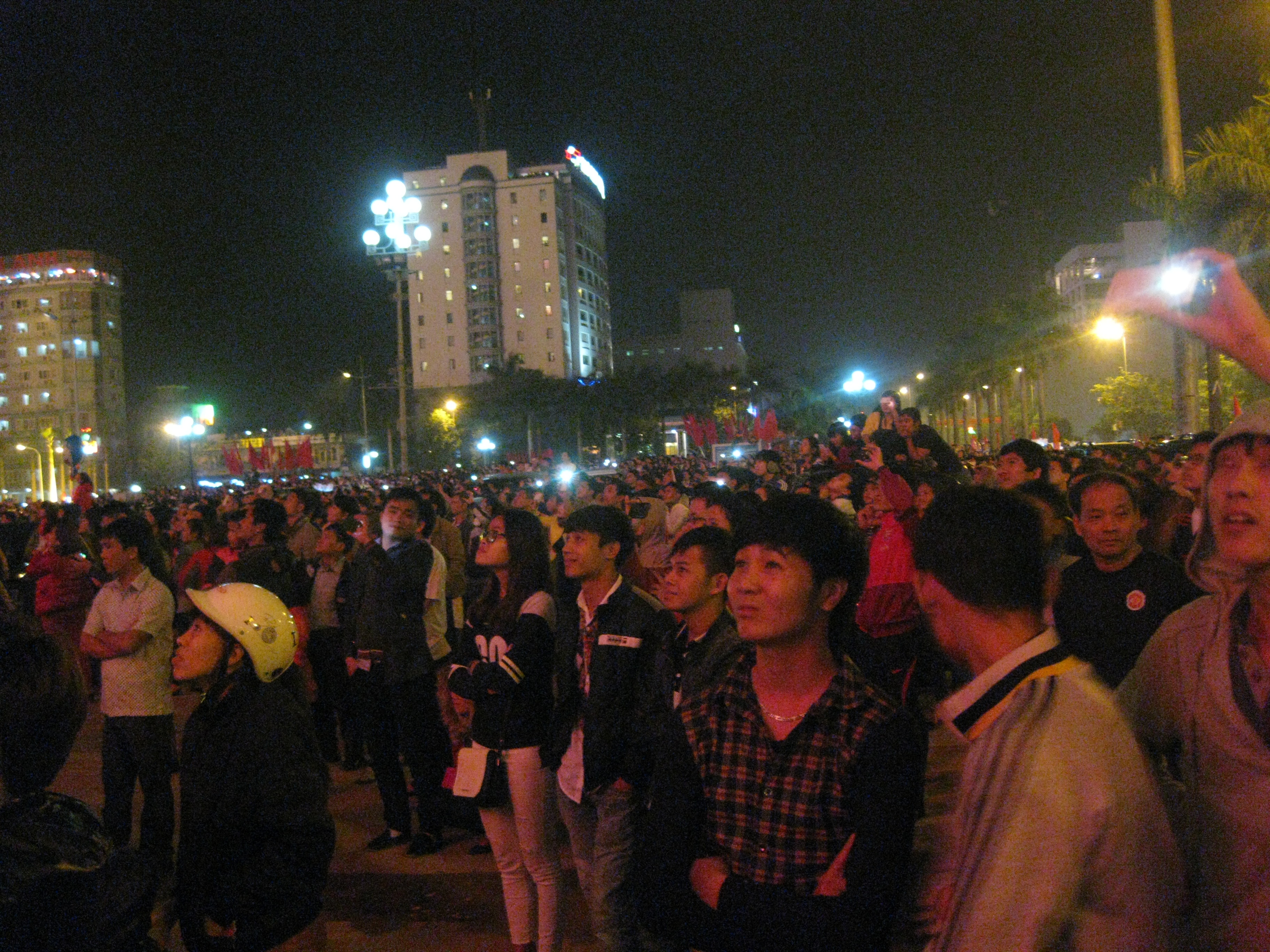 | Hàng nghìn người dân Thanh Hóa đổ về quảng trường Lam Sơn đón xem tiết mục bắn pháo hoa tại buổi lễ. |