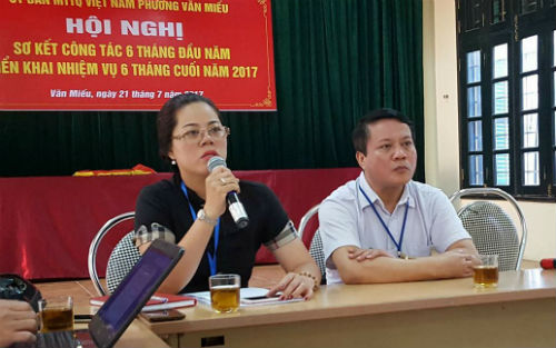 Bà Vũ Mai Khanh - Chủ tịch UBND phường Văn Miếu thông tin tới báo chí về sự việc. |