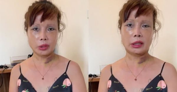 Mặc dù phần miệng còn bị lệch, mặt còn sưng nhưng chị Thu Sao vẫn có vẻ hài lòng với kết quả phẫu thuật thẩm mỹ lần này.