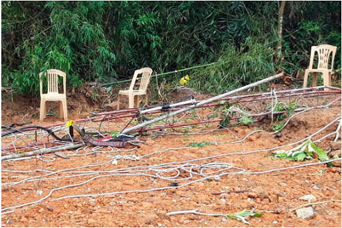 Lúc này có 2 người đang leo lên cột ăng ten trên cao khoảng 36m, khi đang tháo dỡ thì phần dưới cột bị gãy và đổ sập xuống khiến 2 người rơi xuống đất tử vong.