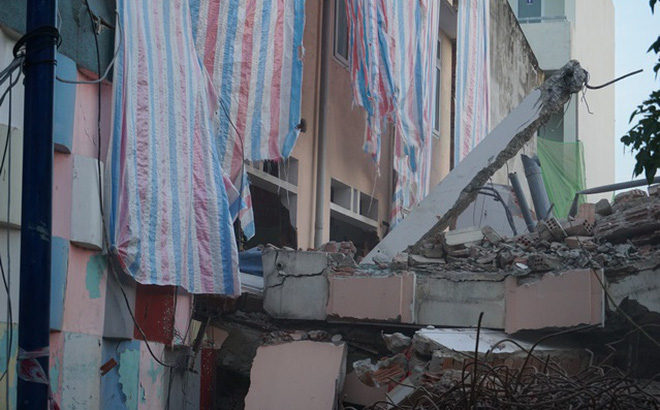 Cô Nguyễn Thị Minh Hải thông tin thêm, khu vực bị sập là sảnh vui chơi ngoài giờ của trường. Chiều qua, lực lượng tháo dỡ có qua đề nghị nhà tường di dời các trẻ sang khuôn viên phòng học ở tòa nhà bên cạnh.