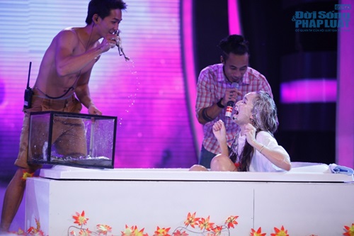 Tuy nhiên đến màn thử thách thứ hai, cô phải vừa hát vừa ngồi trong một bồn nước và bị đổ rất nhiều chất nhày nhụa bẩn (được trộn từ nước, bột mỳ và dầu gội đầu) lên người....