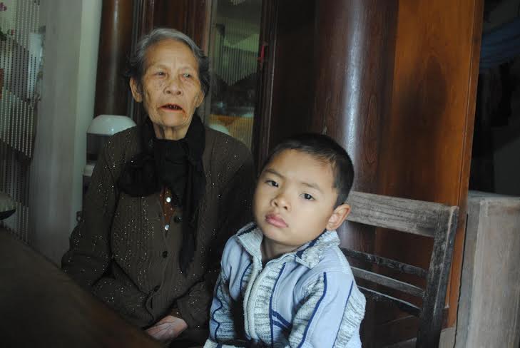 | Bà Ngọc rưng rứng nước mắt khi kể về nỗi bất hạnh đến với 3 đứa cháu nội tội nghiệp. Bên cạnh là cháu Minh mới 4 tuổi với đôi mắt trong sáng, gương mặt ngây thơ chưa hiểu chuyện. |