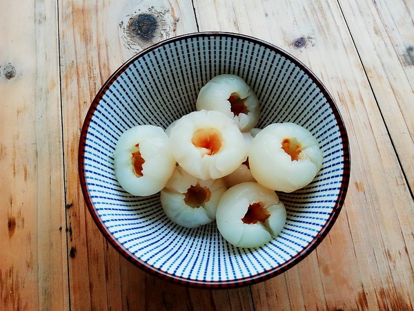 - Bước 1: Vải bóc bỏ vỏ, tách lấy phần cùi cho vào bát.