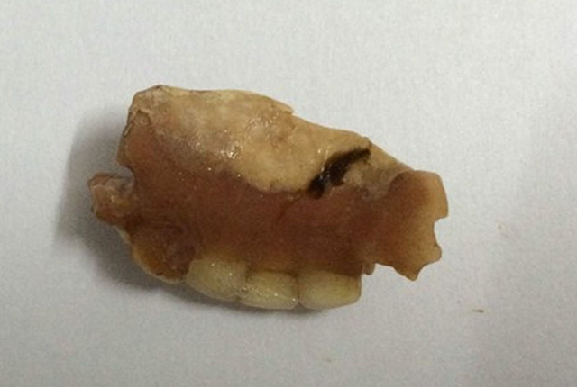 | Hàm răng giả được lấy ra từ dạ dày bệnh nhân. Ảnh Dân Trí. |