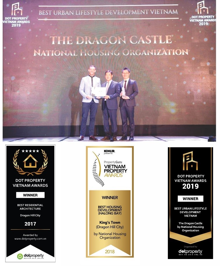Ấn tượng hơn nữa, Trong 2 năm liên tiếp 2017 và 2018, Công ty Tổ chức Nhà Quốc Gia (N.H.O jsc) đã được vinh danh bởi hai giải thưởng danh giá “Dự Án Được Thiết Kế Đẹp Nhất” (Dot Property Vietnam Awards 2017) và Giải thưởng “Dự Án Căn Hộ Tốt Nhất” (PropertyGuru Vietnam Property Awards 2018). Riêng dự án The Dragon Castle Hạ Long, tại giải thưởng DOT Property năm 2019 đã đạt giải “Best Urban Lifestyle Development Vietnam”. Năm 2020, dự án chung cư này tiếp tục lọt vào danh sách đề cử.
