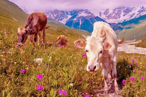 Những con bò nhìn mọi thứ xung quanh với sắc cam và đỏ. Thêm vào đó cảnh vật trong mắt chúng được phóng đại lên một chút.