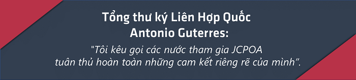 Tuyên bố của ông Guterres nêu rõ: "Tôi kêu gọi các nước tham gia JCPOA tuân thủ hoàn toàn những cam kết riêng rẽ của mình theo JCPOA và tất cả các nước thành viên khác ủng hộ thỏa thuận này".
