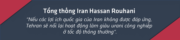 Ngay sau quyết định của Tổng thống Trump, Tổng thống Iran Hassan Rouhani nói rằng nước này có thể tiếp tục thực hiện thỏa thuận hạt nhân nếu các lợi ích của Tehran với các nước ký thỏa thuận được đảm bảo. Tuy nhiên, ông Rouhani cũng tuyên bố rằng nếu các lợi ích quốc gia của Iran không được đáp ứng, Tehran sẽ nối lại hoạt động làm giàu urani công nghiệp ở tốc độ thông thường