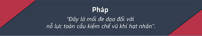 Văn phòng Tổng thống Pháp Emmanuel Macron cho biết, Pháp, Anh và Đức “lấy làm tiếc” về quyết định của Tổng thống Trump và gọi đây là "mối đe dọa đối với nỗ lực toàn cầu kiềm chế vũ khí hạt nhân". Ông Macron đã có cuộc điện đàm với Thủ tướng Đức Angela Merkel và Thủ tướng Anh Theresa May về những bước kế tiếp sau quyết định của ông Trump.