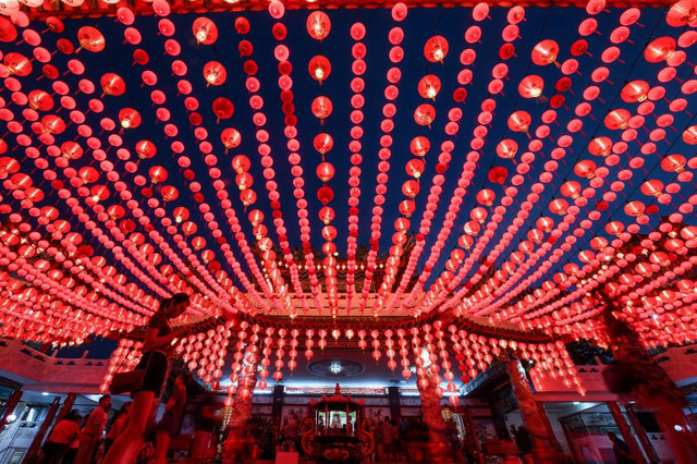 Đền Thean Hou rực rỡ sắc đỏ đón năm mới tại thủ đô Kuala Lumpur, Malaysia - Ảnh: Getty. |
