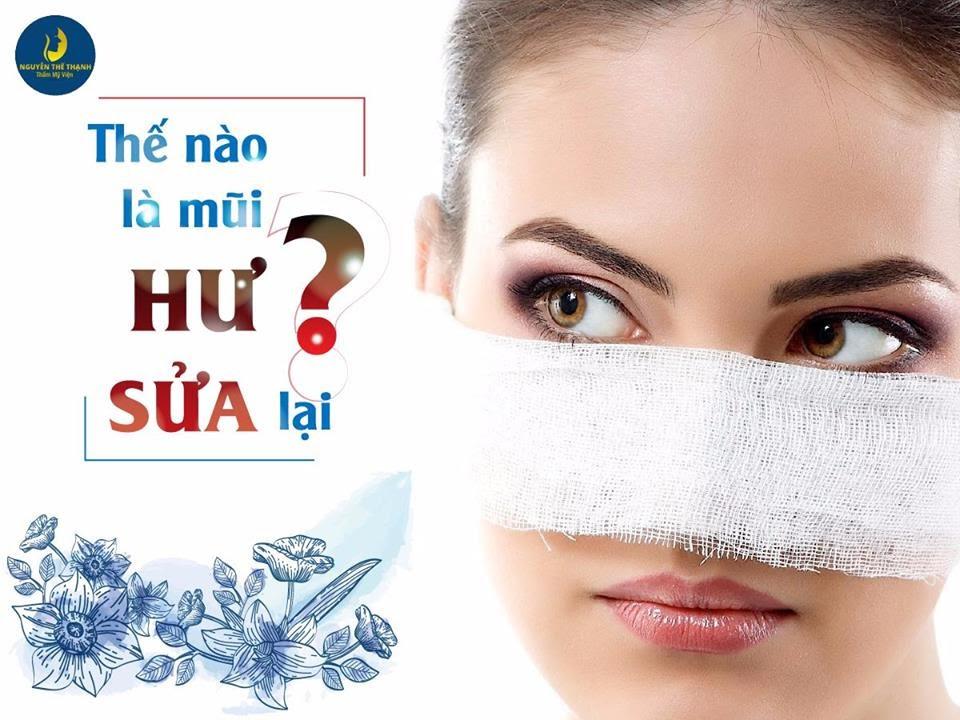Chiếc mũi bị cho là hư sau khi phẫu thuật nâng mũi khi có những biểu hiện như sống mũi bị lệch, vẹo, đầu mũi bị bóng đỏ hoặc mũi bị lộ sống, xương mũi bị gồ lên. Một số trường hợp sau khi nâng mũi bị nhiễm trùng hoặc kích ứng với chất liệu dùng để nâng mũi.