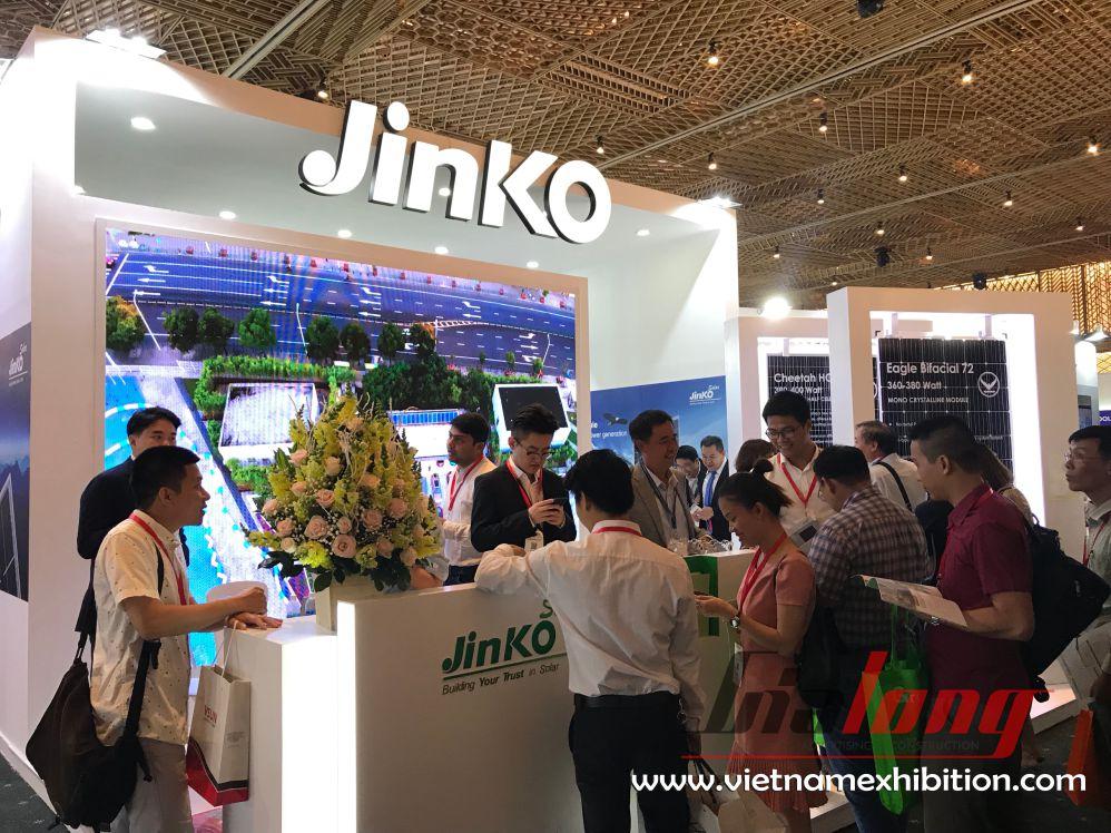 Thành lập vào năm 2006, Jinko có hệ thống rộng khắp Trung Quốc, Úc, Ý, Thụy Sĩ, Canada, Nam Phi… Tại triển lãm, gian hàng Jinko được nhiều khách hàng quan tâm khi quảng bá sản phẩm tấm pin năng lượng mặt trời với ưu điểm vượt trội.