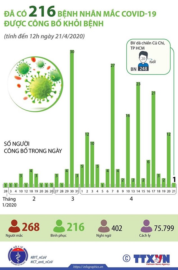 Đã có 216 bệnh nhân mắc Covid-19 được công bố khỏi bệnh. |