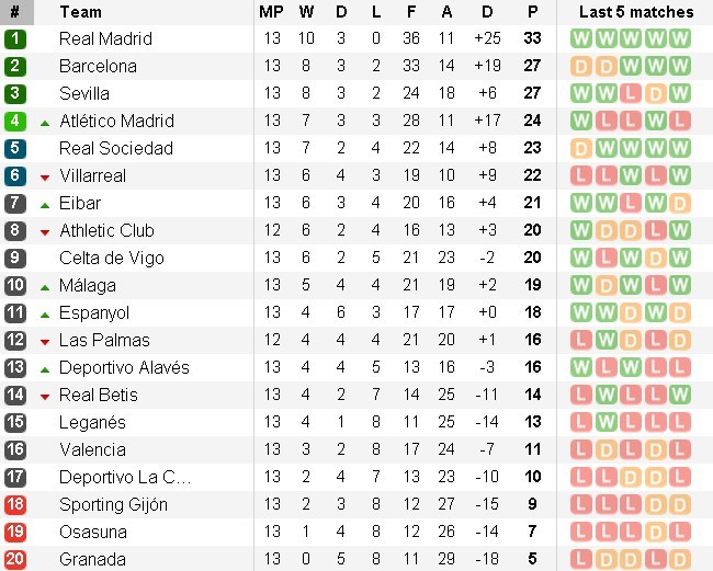 Tính cả chiến thắng 2-1 trước Gijon cuối tuần qua, Real Madrid đã trải qua 31 trận đấu mà chưa biết đến mùi thất bại. Thầy trò Zinedine Zidane đang dồn tất cả sự tập trung vào trận Siêu kinh điển diễn ra vào 3/12 sắp tới. Nếu giành chiến thắng trên sân Nou Camp, khoảng cách giữa đội bóng Hoàng gia với kình địch xứ Catalan sẽ được nới rộng lên thành 9 điểm.