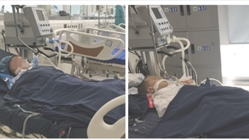 2 bệnh nhi đang trong tình trạng phải thở máy, lọc máu liên tục vì ong đốt. Ảnh: Dân Trí |