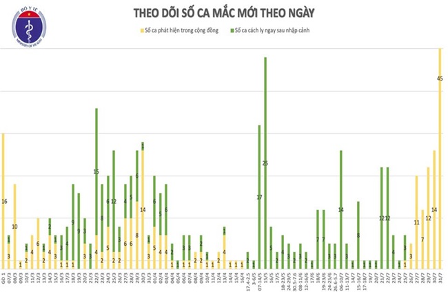 - Tính từ 18h ngày 30/7 đến 6h ngày 31/7: ghi nhận 45 ca mắc mới.