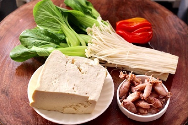 Một bát canh mực nấu với đậu phụ và thêm chút nấm, rau xanh ngọt thơm sẽ khiến cho bữa ăn gia đình thêm hấp dẫn.