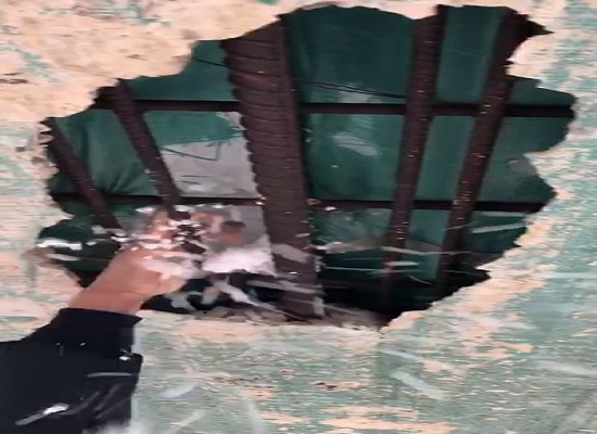 Bê tông rỗng và hoàn toàn không có sự kết dính với khung thép dưới vị trí bê tông bản mặt cầu.
