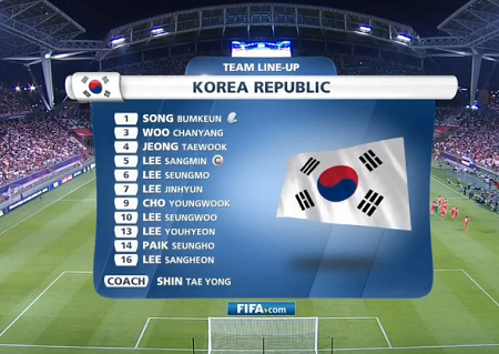 Sau pha đi bóng tốc độ của Lee Seung-Woo, bóng tới chân số 9 Young Wook và cầu thủ này đã dứt điểm cận thành làm rung lưới Guinea. Tuy nhiên sau khi xin tư vấn của đội ngũ giám sát video, trọng tại chính người Chile Julio Bascuñán đã không công nhận bàn thắng của đội chủ nhà.