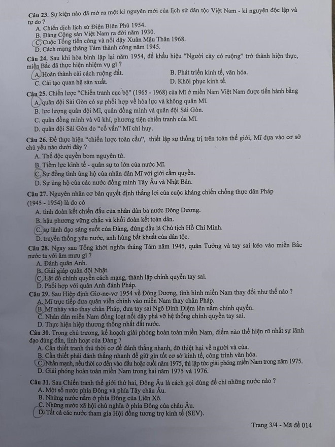 Dưới đây là đề thi vào lớp 10 môn Lịch sử tại Hà Nội: