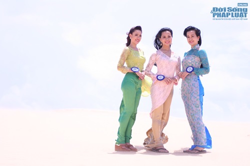 Cùng báo Đời sống và Pháp luật xem một số hình ảnh của các thí sinh trong phần thi chụp ảnh áo dài tại Bàu Trắng: