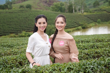 Sau đó, tranh thủ ngày đẹp trời, các thí sinh đã đến tham quan đảo chè Thanh Chương – điểm “check-in” nổi tiếng tại Nghệ An. Những chiếc đầm thướt tha, điểm xuyết duyên với chiếc nón rộng vành, các ứng viên hoa hậu Việt Nam khoe vẻ đẹp tươi trẻ giữa đồi chè xanh ngát.
