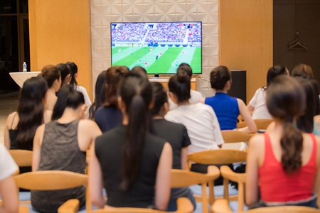 Khi được ban tổ chức (BTC) thông báo sắp xếp một buổi xem World Cup, các thí sinh đã hết sức hào hứng, hoàn thành sớm buổi tập luyện và tranh thủ trở về phòng chuẩn bị cho buổi tối xem bóng đá. Sự xuất hiện của các thí sinh HHVN đã làm tăng thêm độ nhiệt cho không gian cổ vũ bóng đá tại Quy Nhơn.