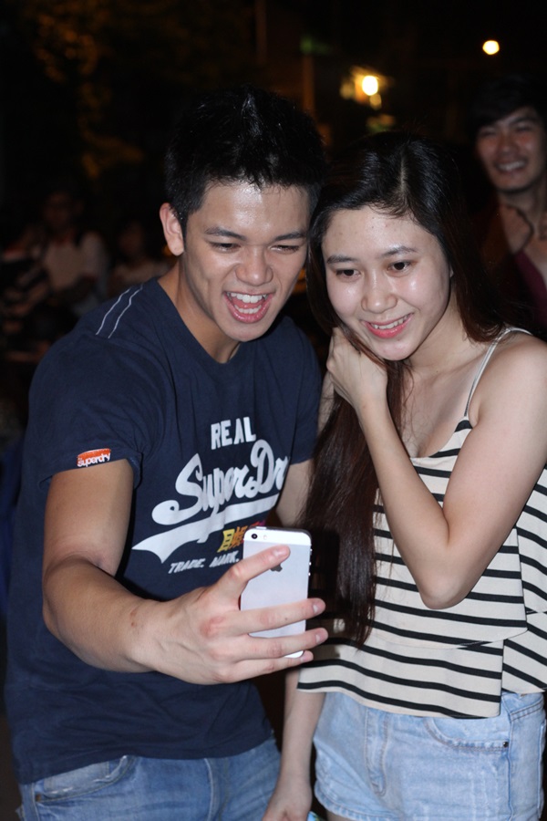 Hotboy Trọng Hiếu cũng có mặt ngay sau đó, ngay lập tức anh được fan bủa vây và xin chụp hình cùng.