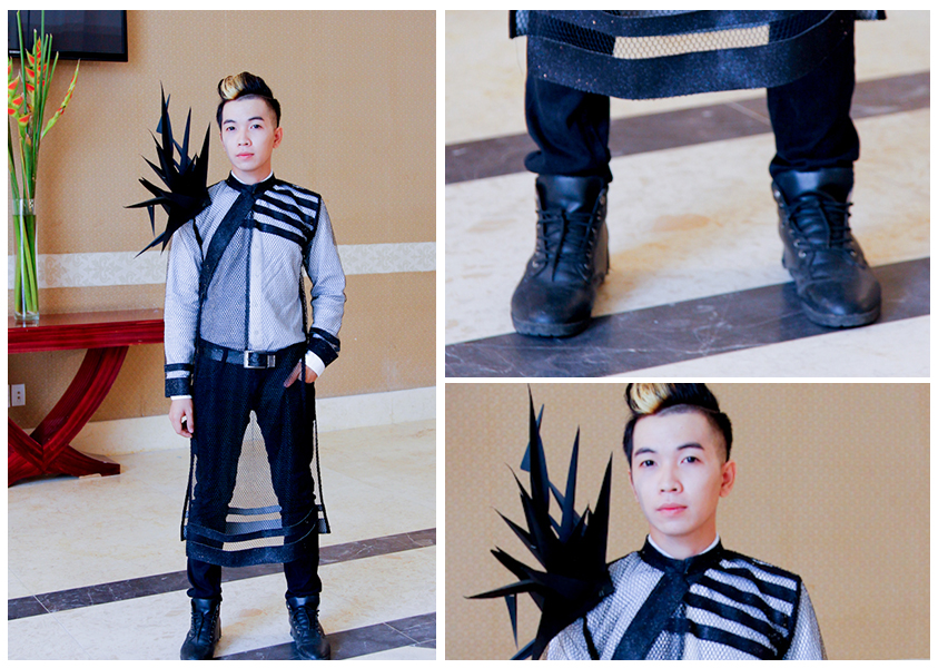 Thí sinh Cao Bá Hưng (Đồng Nai) diện bộ trang phục mang đậm chất dân tộc. Điểm nhấn của bộ trang phục là chiếc áo nằm ở chỗ kết hợp các họa tiết thổ cẩm đầy bắt mắt với các đường vân được thiết kế khéo léo sau lưng. Đặc biệt hơn, cách phồi vòng tay đơn giản khiến cho chiếc áo càng thêm nổi bật.