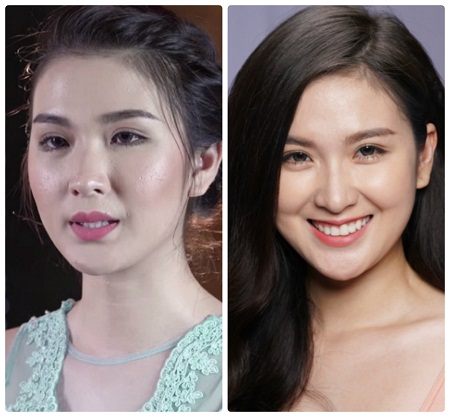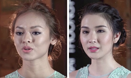 Quỳnh Mai và Ngọc Loan để lộ làn da không được mịn màng dù đã trang điểm. |